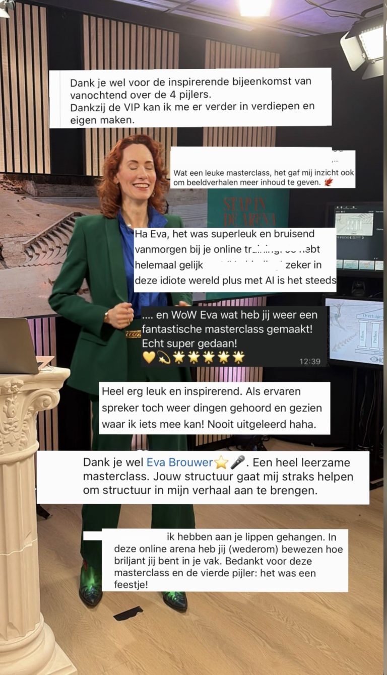 Eva Brouwer is veelgevraagd spreker, bekende sprekerscoach en auteur van een Nr #1 bestseller in haar vakgebied.